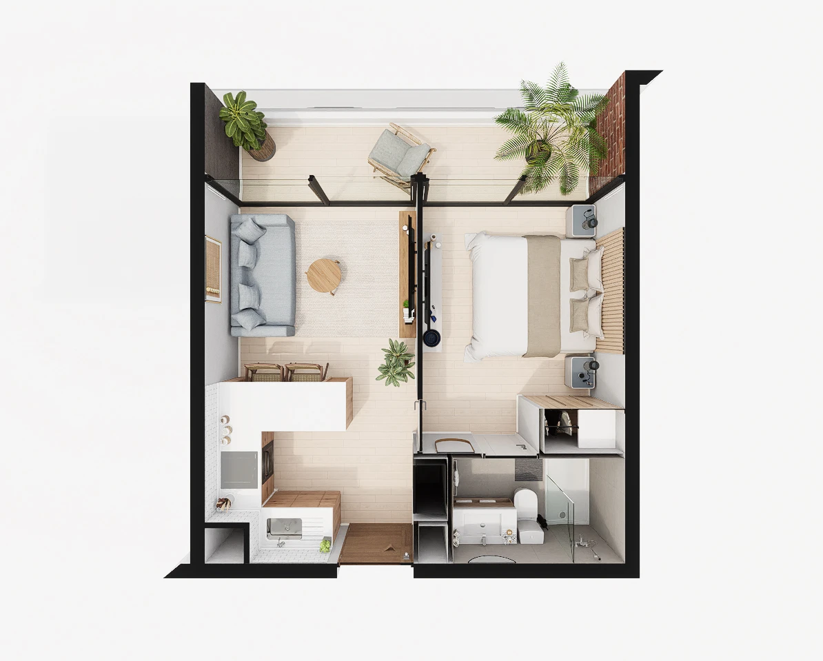 - 1 Dormitorios.
